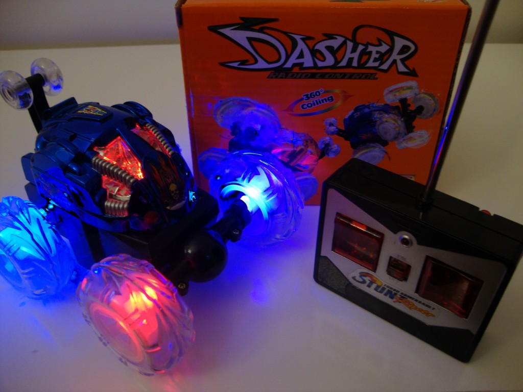 Autić na daljinsko upravljanje koji radi vratolomije. Kotači se ne zaokreću, već se vrte ukrug.